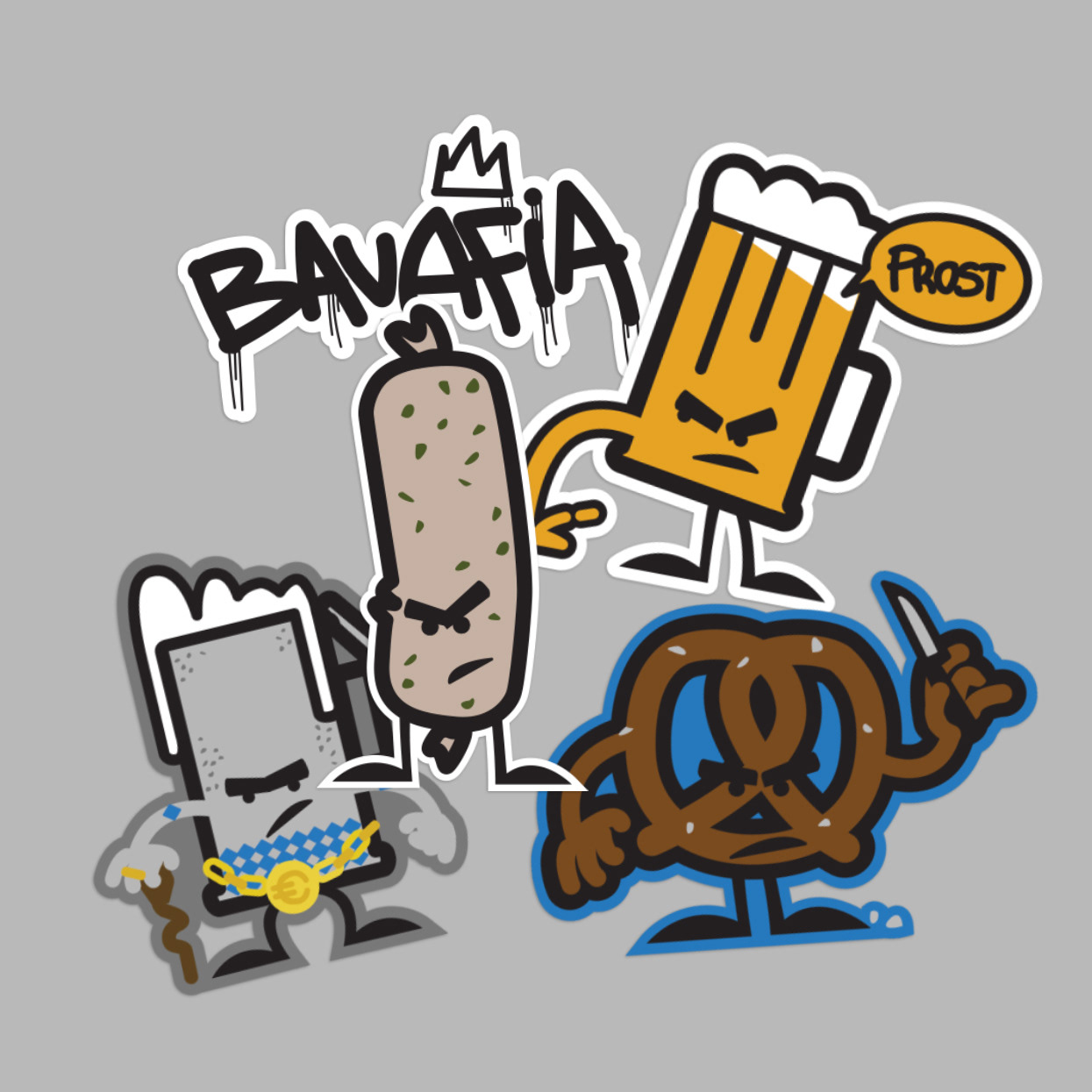 These stickers are the basic kit to get your Bavarian breakfast, also perfect for your skateboard deck.