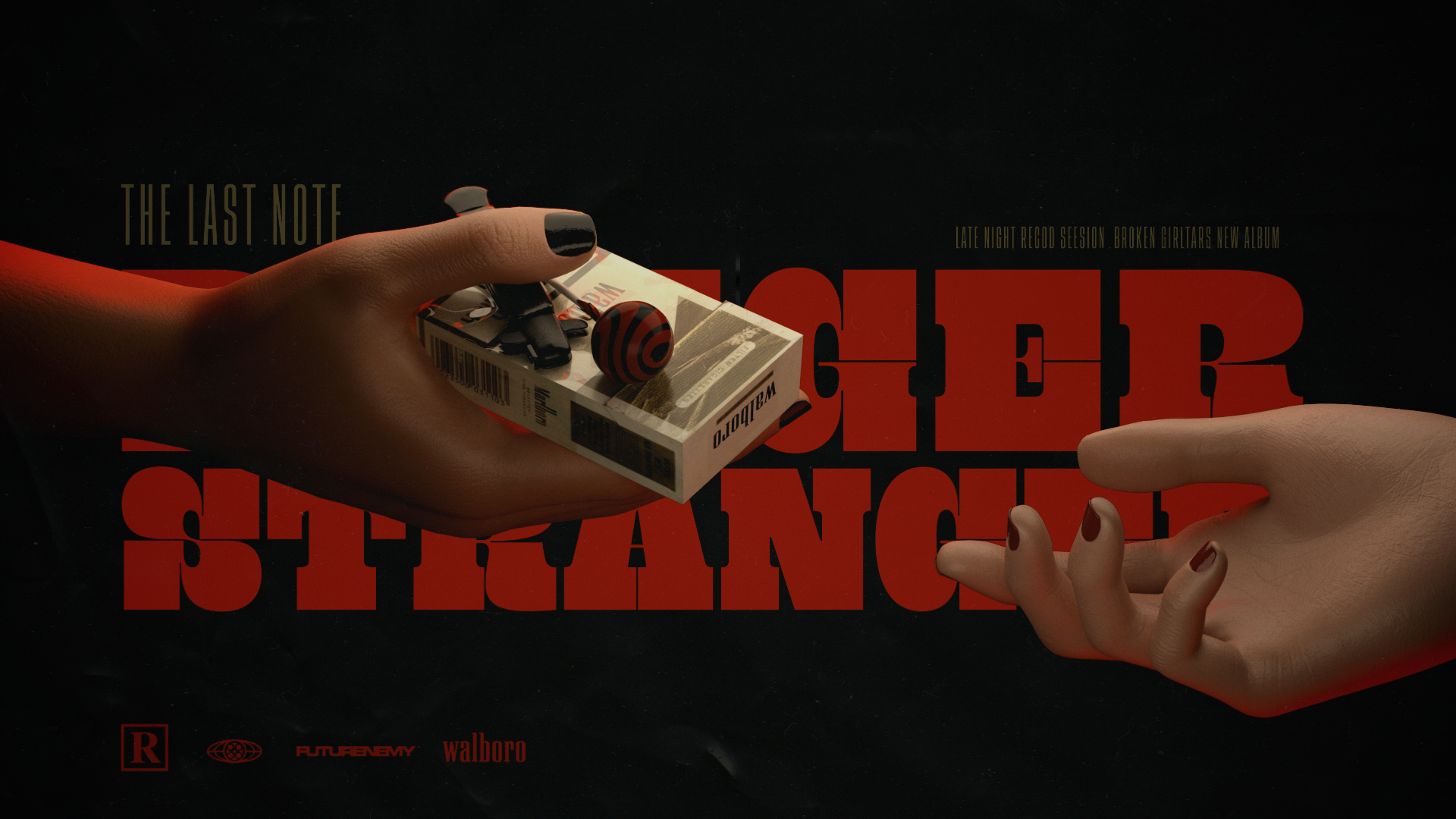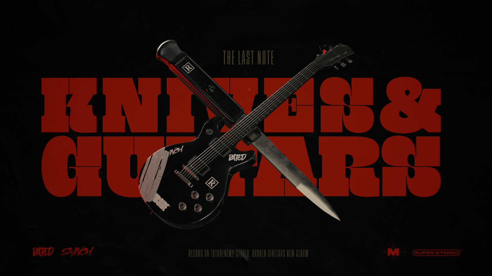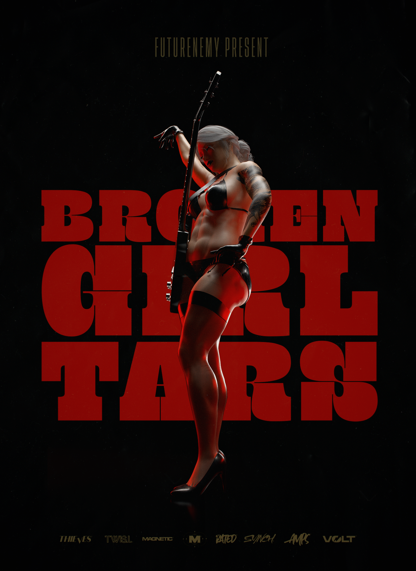 digital illustration series for FUTURENEMY that include the creation of the BROKENGIRLTARS band and all the brands logos for the equipment